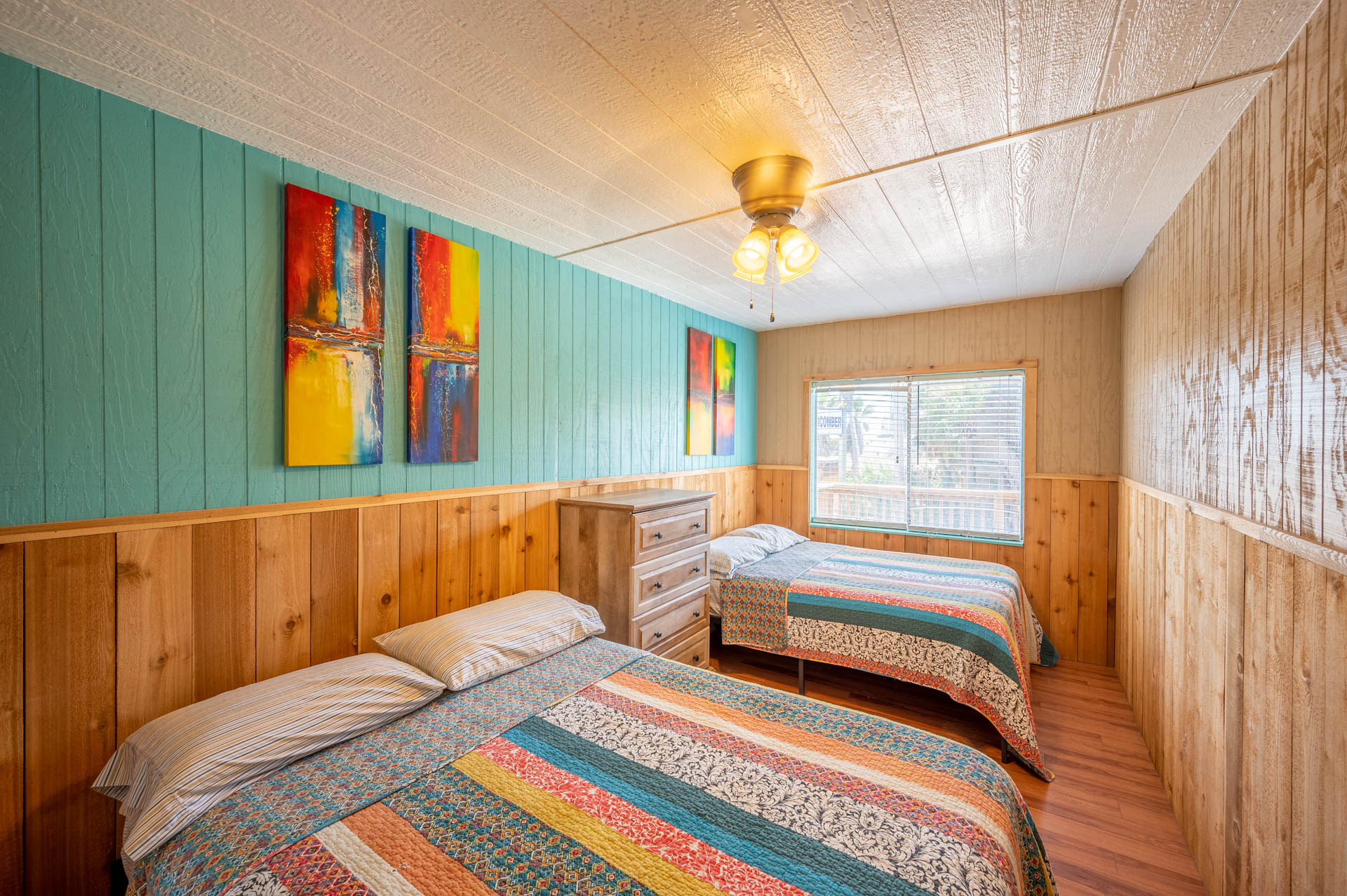 Welcome to this spacious family friendly room on the 2nd floor. The sundeck welcomes you with a picnic table and a bench. This room is perfect to rent along with room 1 for two families or friends to be side by side with a shared deck.